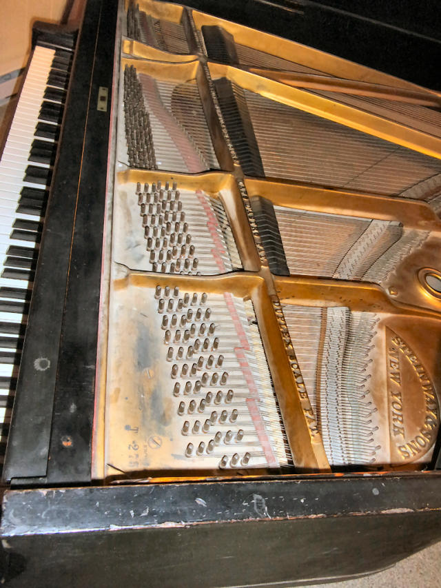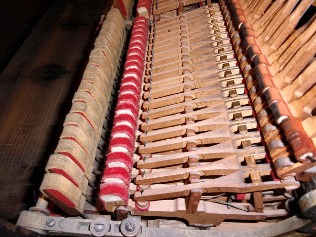 The piano is in very used condition and would be an excellent candidate for rebuilding and refinishing. If the buyer wishes, arrangements can be made to have the piano moved to the rebuilders of their choice (or they may make their own arrangements to have the piano picked up).