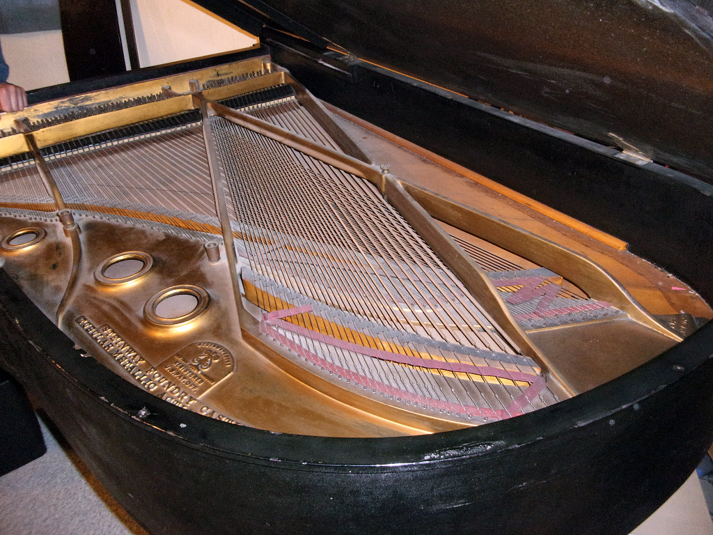 We did find, what appeared to be some minor surface cracks in the pin block along with one slightly larger crack. None of these appeared to be causing any problems for the tuning pins. All tuning pins appeared to be well capable of keeping tension.