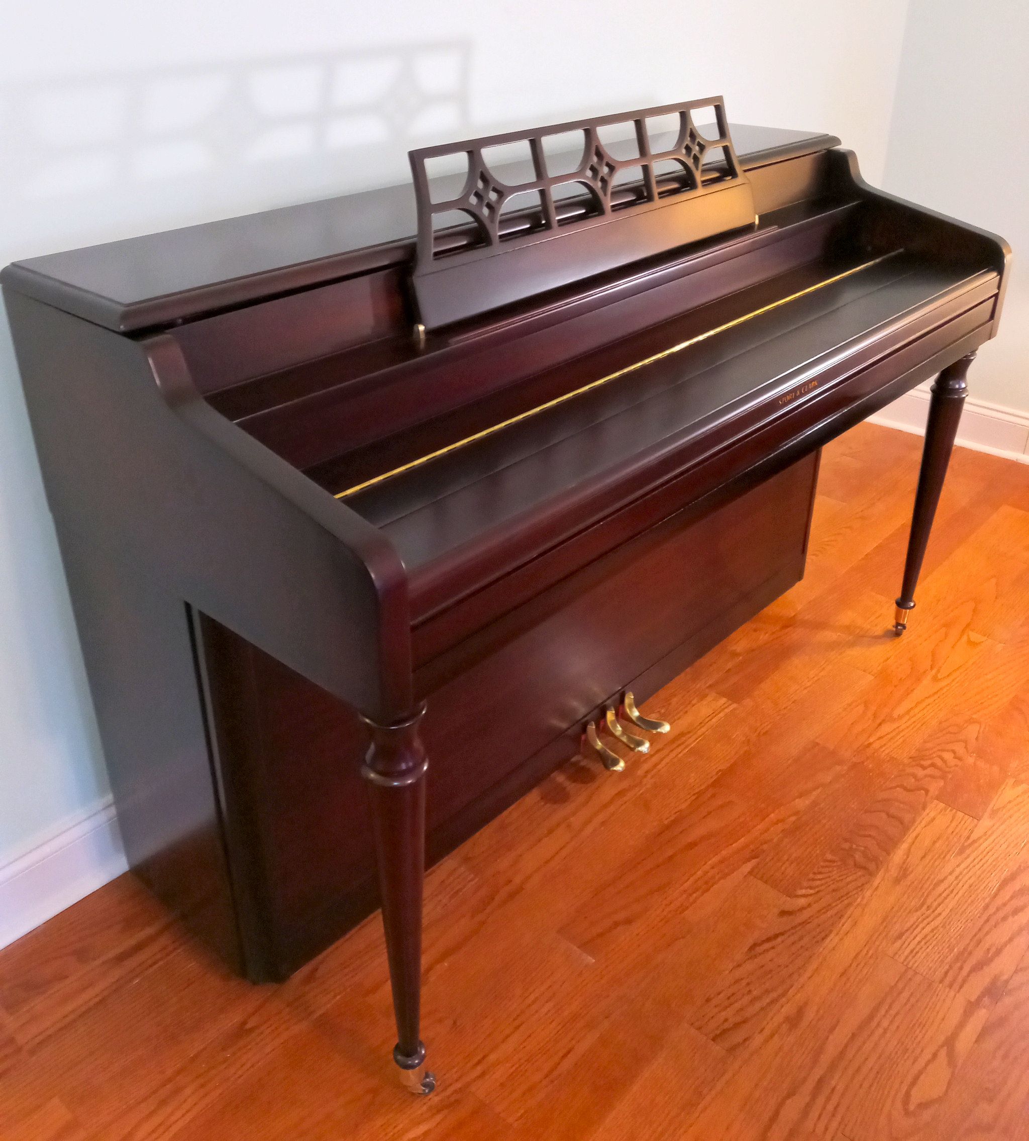Piano has been refinished in our Heirloom style. Rich browns with highlights.