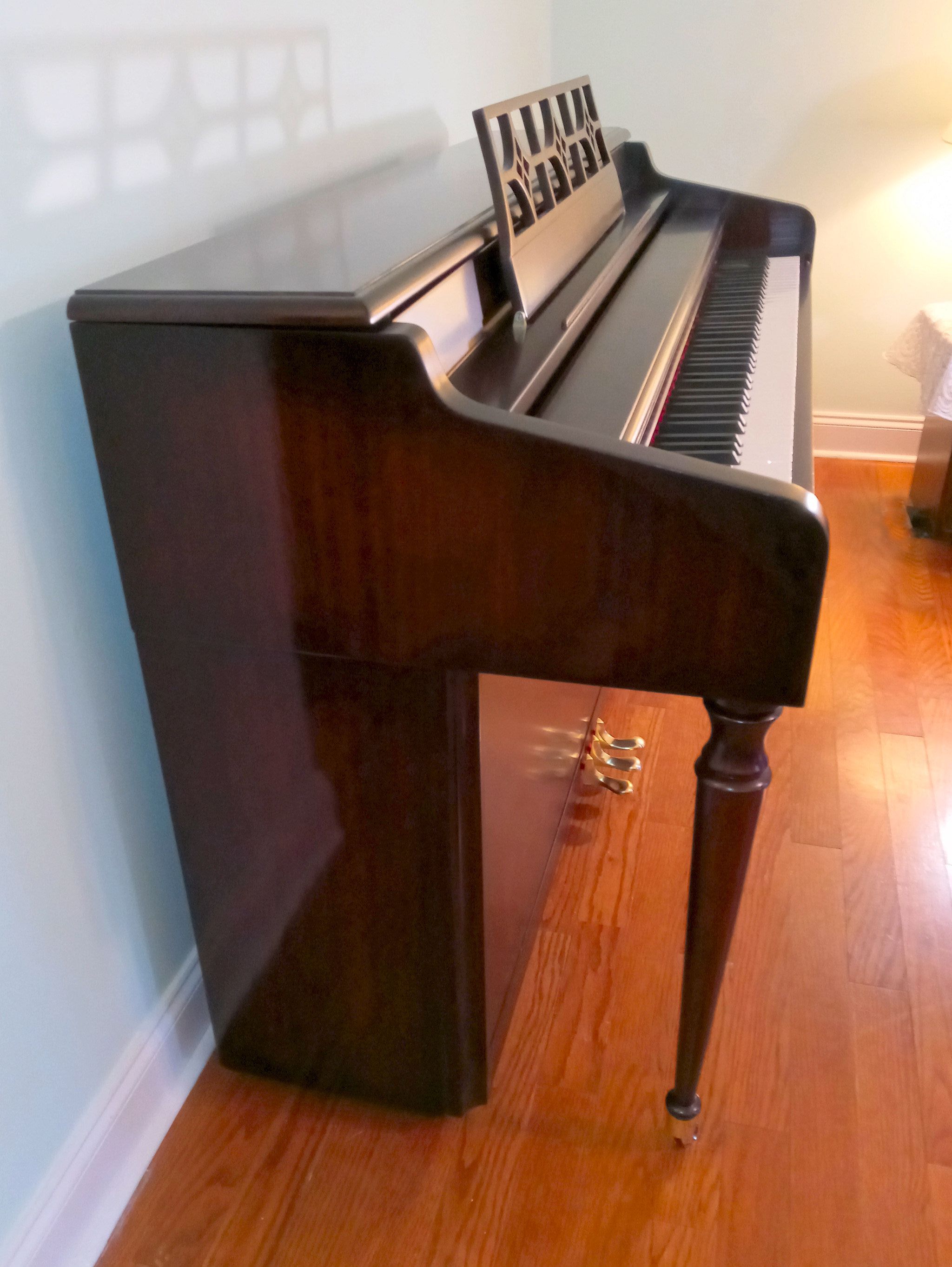 New tuning pins and strings have been installed along with new action felts, new dampers, springs, resurfaced hammers, and fully regulated to manufacturer's specifications.